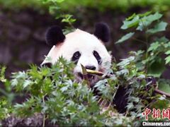 央视新闻客户端中新社成都8月9日电 (王利文 安源)新鲜竹笋被捆扎成“大礼包”,饰以苹果与胡萝卜,9日在中国大熊猫保护研究中心(下称熊猫中心)都江堰基地,即将年满33岁的大熊猫“白云”优雅从容地享用着丰容美食。为提高生物多样性保护的社会参与度,大熊猫生日季丰容活动当日举办,也向公众展现了大熊猫幸福的“退休”生活。 8月9日,中国大熊猫保护研究中心都江堰基地举行大熊猫集体生日会,饲养员为大熊猫们精心准备了多种食物