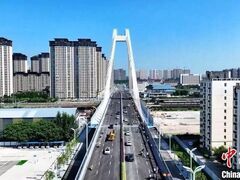界面新闻中新网西安8月2日电 (记者 张一辰)中国单体转体最大吨位双索面预应力混凝土斜拉桥——咸阳彩虹二路高架桥项目主桥1日正式通车。 中国单体转体最大吨位双索面预应力混凝土斜拉桥——咸阳彩虹二路高架桥项目主桥1日正式通车。(中铁十七局供图)彩虹二路高架桥北起玉泉西路,南至宝泉路,项目全长885米,双向六车道。主桥采用2×110米独塔双索面斜拉桥,上跨徐兰高铁(4股道)、陇海铁路(5股道),共九股道,桥塔