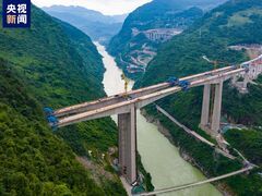 央视新闻客户端7月12日,经过4个小时不间断地紧张作业,国内在建超高墩最大跨度的连续刚构桥——渝湘复线高速公路观音庙乌江特大桥连续梁右幅中跨合龙段顺利浇筑完成,标志着渝湘复线高速公路建设取得突破性进展,为全线通车奠定了坚实基础。 观音庙乌江特大桥一跨穿越乌江及G319国道,桥梁全长944米,其中主桥长494米,主跨242米,最大主墩高达115米,桥面至江面最高通航水位高差260米。主桥上部采用预应力混凝土连续刚
