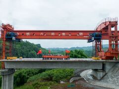 川观新闻记者 阚莹莹 7月9日上午10时20分,随着一榀长32.6米、重达790余吨的预制箱梁稳稳落在新吉村4#大桥桥台上,渝昆高铁宜宾至筠连段首榀预制箱梁架设顺利完成,标志着全长84.9公里的渝昆高铁宜宾至筠连段正式进入架梁阶段。 渝昆高铁宜宾至筠连段启动架梁。此次首架施工的新吉村4#大桥位于宜宾市高县境内,全长142.034米。据悉,中铁八局渝昆七标项目陈村制梁场主要承担渝昆高铁六标(部分)、