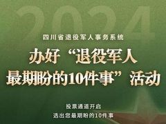 川观新闻尊敬的四川省退役军人和其他优抚对象: 为进一步做好问需于民、精准服务,切实把服务保障退役军人的好事办好、实事办实,全省退役军人事务系统开展2024年度办好“退役军人最期盼的10件事”活动。 根据前期收集意见情况,全省退役军人事务系统汇总了比较集中的20项期盼事项备选,现请您选出最期盼的10项。感谢您的参与,祝您生活愉快,身体健康! 投票时间 2024年7月1日至7月5日 参与对象 四川省退役军