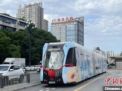 中国新闻网中新网成都7月2日电 (记者 刘忠俊 王鹏)7月2日,四川宜宾市智能轨道快运系统T2线正式通车投运,至此该市智轨运营线路超80公里,覆盖城市主要区域,推动了城市交通优化升级。 投入运行的智轨T2线。蜀道集团供图据了解,此次通车的宜宾智轨T2线长8.5公里,共设地面车站8座,起于宜宾岷江大道与金沙江北路西段交叉口东北侧的啤酒广场站,经天池站、天池家园站、半岛大院站、春江盛景站、金帝庄园站、新业街站,