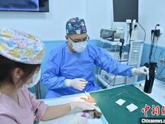 四川日报报业集团中新网长春6月23日电 题:异宠饲养起风潮 Z世代异宠医生三年接诊两千余例 中新网记者 郭佳 一只豚鼠在笼子里安静地吃草,它只有巴掌大小,皮肤光溜溜的,鼻子上有一撮小黄毛,憨憨的样子着实可爱。它已经做了两次胫骨远端骨折手术,再过几天就可以出院了。 在吉林长春一诺宠物医院的异宠病房里,住着许多“患者”,有天上飞的,有地上跑的,也有水里游的。 6月21日,吉林长春,周浚琦(右一)为手术后的豚鼠拆线。