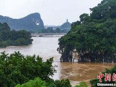 上观新闻6月18日5时10分,漓江桂林水文站出现147.55米的洪峰水位,超警1.55米。为确保漓江水上交通安全,桂林海事局从6月17日起对漓江船舶、排筏实施全线封航。 图为6月18日,广西桂林城徽象鼻山泡在洪水中,“象鼻子”被淹了大半。周利朔 摄图为6月18日,广西桂林市象鼻山景区入口被水淹没。周利朔 摄图为6月18日,洪峰过境桂林市区漓江段。(无人机照片)图为6月18日,在广西桂林市解放桥处,江水漫过