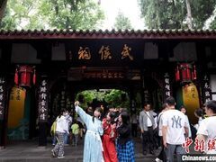 6月8日,成都武侯祠博物馆举办“2024年文化和自然遗产日暨端午民俗活动”。本次活动以“端午传非遗 雅韵游武侯”为主题,通过丰富多彩的活动让民众在“三国圣地”感受三国文化。 图为“张飞”为游客派发端午小礼品。安源 摄图为诗歌朗诵表演。安源 摄图为吐火表演。安源 摄图为游客在武侯祠博物馆拍照留念。安源 摄图为“诸葛亮”与游客一起包粽子。安源 摄图为变脸表演。安源 摄图为木偶戏表演。安源 摄图为民众在