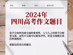 6月7日上午11点10分左右,在2024年普通高校招生统一考试四川师大附中等考点,记者从多位提前交卷的考生处获悉,今年四川高考作文题目是根据一段话自拟题目撰写。大概内容如下: 人与人之间要学会相处交流。虽然不交流可以避免冲突,但是交流能让我们坦诚相待。 如果是你,你准备怎么写?