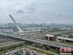 中国天气网中新网成都6月5日电 (记者 刘忠俊)6月5日凌晨,经过120分钟连续紧张作业,四川成都杉板桥路中环至三环跨铁路单塔无背索转体斜拉桥梁体顺利就位,实现完美“转身”,为杉板桥路改造工程全线通车奠定了坚实基础。 即将转体的成都单塔无背索斜拉桥施工现场。中铁二院供图据了解,成都杉板桥路中环至三环跨铁路单塔无背索转体斜拉桥主跨跨径188米,桥梁总长283米,桥塔塔高128米,桥梁宽度35米,全桥总重约3万