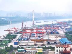 封面新闻川观新闻记者 陈昊/文 郝飞/图 长江畔,泸州港国际集装箱码头,一艘即将启运的集装箱船载着340个标箱的“四川造”产品,将通过长江运至重庆后,再加装“重庆造”产品,最终运至上海出海。 一条集装箱班轮航线,将川渝两地货物串联在一起。 6月3日,“万千气象看四川”二季度集中采访活动报道组走进泸州港,探寻“天府首港”如何主动融入成渝地区双城经济圈建设。 泸州港。四川第一大港 今年1—5月吞吐量达8.81