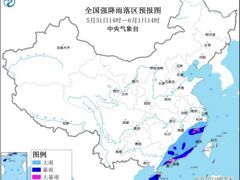 新华网中新网5月31日电 据中央气象台网站消息,中央气象台5月31日10时发布暴雨黄色预警:预计,5月31日14时至6月1日14时,海南岛、广东、福建、浙江中南部、江西南部和东部等地有大到暴雨,其中,海南岛东北部和西南部、广东沿海、福建西南部沿海和北部、浙江南部等地部分地区有大暴雨(100~200毫米)。上述部分地区伴有短时强降水(最大小时降雨量20~50毫米,局地可超过80毫米),局地有雷暴大风等强对