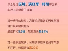 微言教育京广高铁武广段,沪昆高铁沪杭段、杭长段,杭深铁路杭甬段等4条高铁运行的时速300公里及以上动车组列车将于6月15日实行灵活折扣、有升有降的市场化票价机制,相关列车车票将于6月1日开始发售。 依据国家有关规定,铁路运输企业对上述4条高铁动车组列车实行市场化定价,将现行的固定、单一票价机制调整为灵活折扣、有升有降的市场化票价机制。调整后,上述列车车票执行票价将以铁路12306和相关车站公告的公布票价为