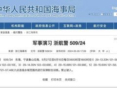 浙江海事局发布航行警告,5月27日至6月15日每日8时至18时,东海宁波象山沿海进行实弹射击训练,禁止驶入。