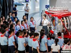中国新闻网中新网成都5月25日电 (王利文)“我们需要将反应物加热到1亿摄氏度以上,发生聚变反应,释放出巨大能量……”24日,中核集团核工业西南物理研究院聚变科学所团委书记郑雪用通俗易懂的语言向青少年们介绍新一代“人造太阳”的工作原理,让孩子们惊叹不已。 24日晚,2024四川省科技活动周暨蓉城科学之夜启动仪式在成都举行,青少年们正在听讲解。成都市科学技术局供图前沿硬核科技成果组团亮相、“国之重器”创新压轴