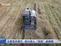 四川观察今天(5日)我们迎来二十四节气的立夏,立夏至农事忙,我省全面进入小春作物抢收、大春作物抢种时段,今年,四川“双抢”高峰预计将持续3周左右,整体进度与去年基本持平。 又是一年麦收忙。这几天,眉山市彭山区的小麦陆续成熟迎来收割,一台台收割机开足马力在金色的麦浪中来回穿梭,收割、脱粒、装车等作业有序进行,广袤的麦田处处可见丰收景象。 眉山市彭山区观音街道兴崇社区种粮大户 王程琳:(亩)产量预计在7
