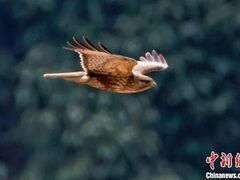 普通鵟展翅翱翔。刘军权摄近日,摄影爱好者在安徽省黄山市祁门县祁山镇星光村拍摄到一只普通鵟在林边觅食的画面。 普通鵟是鹰形目鹰科鵟属鸟类,又称鸡母鹞、东方鵟。中型猛禽,体长42-54厘米。翱翔时两翅微向上举成浅“V”字形。色型多变,由深棕色至浅棕色;喙铅灰色,端黑,虹膜黄色至褐色;上体多为深红褐色,下体偏白,具深色横斑或纵纹,初级飞羽基部有明显的白斑,飞羽外缘和翼角黑色;尾浅灰褐色,有多道暗色横斑;