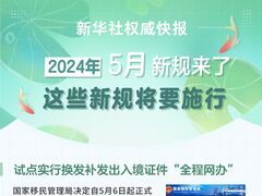 新华社试点实行换发补发出入境证件“全程网办” 将非银行支付机构及其业务活动进一步纳入法治化轨道进行监管 首次对社会组织名称进行统一规定 …… 这些新规5月施行 愈加完善的法治 为美好生活保驾护航 记者:齐琪 编辑:刘媛媛 设计:苗夏阳 新华社国内部出品