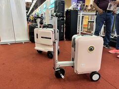 新华社新华社广州4月30日电(记者陆浩)在正在举行的第135届广交会展馆内,时不时会见到境外采购商坐在行李箱上“飞驰”而过——这款时速15公里、能装能跑、不骑时还能当凳子的电动行李箱,是这届广交会的爆款产品。 “已经签单超过1万个,连夜从常州运来的1000多个现货也售空了。”这款行李箱的生产商常州爱尔威智能科技有限公司销售总监汤永传表示,该产品去年出口30余万个。 第135届广交会上展示的电动行李箱