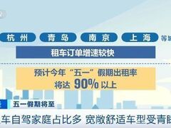 综合各租车平台数据显示,在即将到来的“五一”假期,家庭出游占比达45%,预订车型以SUV和商务车为主,宽敞舒适车型受青睐。 “五一”期间,国内租车自驾订单同比增长40%,杭州、青岛、南京、上海等城市租车订单增速较快,预计今年“五一”假期出租率将达90%以上。 西北线、西南线预订火爆,如西宁和乌鲁木齐、银川、兰州、拉萨等城市,气候舒适的海边以及交通资源便捷的南方城市,如青岛、威海、宜昌、黄山、杭州、