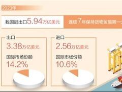四川文明网数据来源:商务部 制图:蔡华伟记者近日从商务部获悉:2023年,我国进出口5.94万亿美元,连续7年保持货物贸易第一大国地位。在世界经济艰难复苏的大背景下,我国保持了国际市场份额的总体稳定,显示出较强的发展韧性。 世界贸易组织当地时间4月10日发布2023年全球货物贸易数据。数据显示,全球货物出口3年来首次下降。2023年,全球出口总额23.8万亿美元,下降4.6%,继2021年、2022年连续