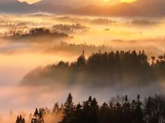 新华社近日,在乌蒙山深处的云南省昭通市盐津县,出现了壮美的日出云海景观。清晨,一轮红日从层层叠叠的群山中冉冉升起,金色的阳光洒落在半山云海上,与山林、村庄融为一体,如轻纱薄雾弥漫于山峦之间,波澜壮阔的云海画卷,宛如一幅春日“千里江山图”。