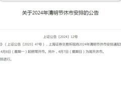 央视网中新经纬3月21日电 21日,上交所、深交所、北交所发布2024年清明节休市安排公告,4月4日(星期四)至4月6日(星期六)休市。 上交所网站截图深交所网站截图北交所网站截图三大交易所清明节休市安排为:4月4日(星期四)至4月6日(星期六)休市,4月7日(星期日)为周末休市。4月8日(星期一)起照常开市。 上交所网站截图同日,上交所,深交所网站分别发布《关于2024年耶稣受难节、复活节、清明节期间