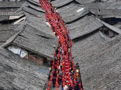 川观新闻一条长街,八方赴宴。2月2日,第四届荥经古道长街宴暨“新村赏古韵·添福迎新春”游园会在雅安市荥经新添驿站徐徐展开。 伴随着铿锵有力的锣鼓声,从街头到巷尾,被串联在一起的不仅是布满美食的长桌,还有地地道道的荥经年味。 行走在新添驿站古韵悠长的老街内,高挂的红灯笼显得格外喜庆,转角还可能与民俗撞个满怀。舞龙、舞狮、川剧变脸、传统京剧表演接连不断。长街宴席间,“财神”来回穿梭,为游客市民送上祝福红包