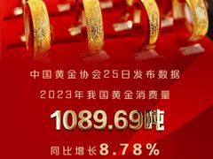 川观新闻中国黄金协会1月25日发布数据 2023年全国黄金消费量1089.69吨,同比增长8.78% 其中,黄金首饰消费706.48吨,同比增长7.97% 金条及金币消费299.60吨,同比增长15.70% 工业及其他用金83.61吨,同比下降5.50% 随着我国消费市场恢复向好,黄金消费需求增长明显 2023年,我国国内原料黄金产量为375.155吨,同比增长0.84% 黄金行业进一步实施新一轮找矿突破