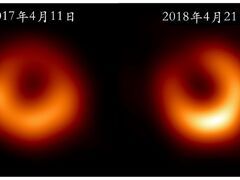 新华社客户端近日,事件视界望远镜国际合作组织发布了2018年4月拍摄的位于椭圆星系梅西耶87中心的超大质量黑洞(M87*)的新照片。这是继2017年拍摄首张黑洞照片后,对M87*的又一次独立成像。新发布的黑洞照片与2017年的照片相似,呈现出大小相同的环状结构。明亮的环中间存在一个很深的暗影,即广义相对论预言的“黑洞阴影”。与2017年的照片相比,环的最亮部分沿着逆时针方向偏转了约30度,这或是由黑洞周围湍流