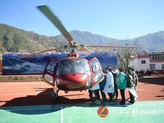 中国新闻网1月8日,“攀枝花市—木里县”直升机空中医疗救护通道成功完成首次患者转运。木里县一突发性脑出血患者术后情况危急,通过医疗救援直升机仅用时40分钟成功转运到攀枝花市攀钢集团总医院。 据悉,此次航空医疗救护的患者为一名中年男性。患者因突发性脑出血在木里县人民医院完成手术,术后未脱离呼吸机且意识模糊。在取得医生会诊结果后经患者家属同意,决定转院至攀枝花市攀钢集团总医院继续治疗。 目前,木里到攀枝花未通高