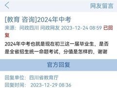 封面新闻记者 何方迪 2022年4月,教育部办公厅发布《关于做好2022年中考命题工作的通知》,其中就明确提出要积极推进省级统一命题。 四川何时实行中考全省统一命题?近日有网友在问政平台留言,咨询2024年参加中考的毕业生是否面临全省统一命题考试。 四川省教育厅基教处对此问题进行了回复:“我省2024年不实行中考统一命题,中考政策无变化。”