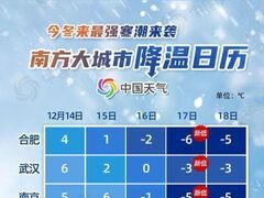 新华网12月13日,今冬以来最强寒潮已经启程。一直到16日,这轮强寒潮将自西向东、自北向南横扫我国大部地区,部分地区降温可达14℃以上。寒潮影响期间,北方部分地区最低气温将接近或跌破同期极值;南方则会上演由暖到冷的大逆转,部分地区最高气温降幅可达20℃左右。 13日起至16日,一股强寒潮将自西向东、自北向南影响我国大部地区。气象分析师王伟跃介绍,这股寒潮威力强大,本周后期它将大举南下,最南可抵达华南一带