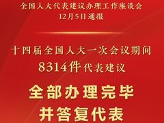 央视新闻客户端记者从12月5日在河北正定举行的全国人大代表建议办理工作座谈会上获悉,今年3月十四届全国人大一次会议期间,代表们依法履职,共提出建议8314件。经逐件研究分析,分别交由204家单位研究办理。经各方面共同努力,目前已经全部办理完毕并答复代表。