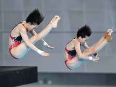 北京日报客户端2023年全国跳水锦标赛暨巴黎奥运会、多哈世锦赛选拔赛26日展开女子双人10米台、男子双人3米板的角逐,全红婵/陈芋汐、王宗源/龙道一分获金牌。 在女子双人10米台的比赛中,全红婵/陈芋汐一路领先,前两轮动作都近乎满分;尽管在第三轮,两人在难度系数为3.0的107B动作中同步表现不够完美,但最终仍以354.66分夺冠。张家齐/掌敏洁以322.20分排名第二。卢为搭档刚满12岁的小将李蕊汐从首轮的第