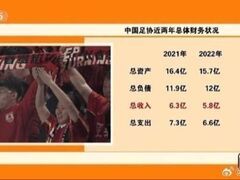 央视新闻客户端《足球之夜》报道了足协10月16日足代会内容,中国足协在会上公布了2021、2022年财务报告。数据显示,足协近年来收入明显减少,总负债提升至12亿元,2022年相比2018年的总负债提升了7.3亿。