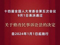 川观新闻9月1日,十四届全国人大常委会第五次会议表决通过关于修改民事诉讼法的决定,自2024年1月1日起施行。 此次民事诉讼法的修改,着重对涉外民事诉讼程序制度进行完善,有利于进一步提升涉外民事案件审判质效,更好保障当事人的诉讼权利和合法权益,更好维护我国主权、安全和发展利益。同时,此次法律修改也积极回应社会关注,对民事诉讼领域的其他有关问题进行了修改完善。