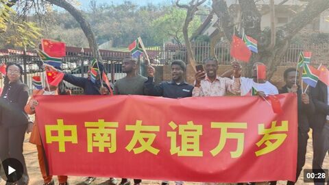 央视新闻客户端当地时间8月22日上午,习近平主席将在南非总统府出席拉马福萨总统举行的欢迎仪式。当地民众和华人华侨在沿途挥舞中南两国国旗,高举“热烈欢迎习近平主席”、“中南友谊万岁”等横幅,热烈欢迎习近平主席到访。