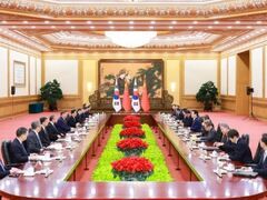 新华社1月5日下午,国家主席习近平在北京人民大会堂同来华进行国事访问的韩国总统李在明举行会谈。 习近平指出,当前世界百年变局加速演进,国际形势更加变乱交织。中韩在维护地区和平、促进全球发展方面肩负重要责任,有广泛利益交集,应当坚定站在历史正确一边,作出正确战略选择。