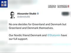 CMG国际时讯1月4日,美国总统特朗普在接受采访时再称“我们绝对需要格陵兰岛”。丹麦首相弗雷泽里克森4日表示,美国无权吞并格陵兰岛,她要求美方停止威胁丹麦和格陵兰人民。 芬兰总统斯图布5日表示,除了格陵兰岛和丹麦之外,没有任何一方可以代替它们作出决定,芬兰全力支持丹麦和丹麦首相弗雷泽里克森。 挪威首相斯特勒同一天表示,格陵兰岛是丹麦不可分割的一部分。挪威全力声援丹麦。 法国外交部发言人帕斯卡尔·孔法夫勒接受采访