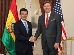 央视网△玻利维亚总统罗德里戈·帕斯·佩雷拉和美国副国务卿克里斯托弗·兰道(资料图)当地时间11月8日,玻利维亚新任总统罗德里戈·帕斯·佩雷拉宣布,与美国全面恢复外交关系,包括将互派大使。 帕斯指出,与美国恢复大使级外交关系、对美关系正常化是其基于务实主义与对外开放的外交政策转型的重要组成部分,已与美方初步建立技术工作组,进行教育、公共安全、经济发展、贸易和外国投资等领域的合作。 2008年,时任玻利维亚