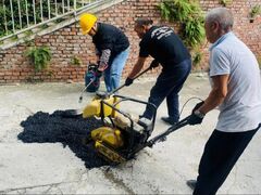 自贡网自贡融媒记者 王乐乐 “原来停车场出口的大坑困扰着驾驶员出入和居民的出行,这下好了,路面修补好后既方便了车辆出入,出去遛弯也方便了。”10月16日,家住自流井区富台山社区停车场附近的杨婆婆开心地说。当天下午,专业技术人员进驻现场,对柏油进行加温热合、铲沙和料、压缩平整路面。在多名员工的齐心协力合作下,经过约1个小时施工,停车场出口处的坑洼不平路面展露新颜。 据悉,富台山社区通过搭建“人大代表接待日