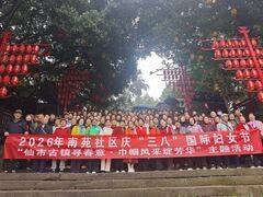 自贡网为丰富辖区居民精神文化生活,凝聚社区向心力,3月4日,学苑街道南苑社区以党建为引领,组织132名居民前往仙市古镇,开展“巾帼绽芳华古镇寻春意”庆“三八”妇女节主题活动。 活动现场氛围热烈。居民们齐声高唱《没有共产党就没有新中国》,用嘹亮歌声抒发爱党爱国情怀;暖场拍拍操节奏轻快,迅速点燃现场热情。舞蹈、太极功夫扇等节目轮番上演,尽显居民昂扬风采;社区工作人员带来手语舞《感恩的心》,以温暖手势传递美好