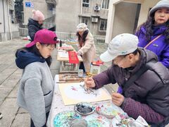 荣县融媒体中心自贡融媒记者 王乐乐 1月22日,由自流井区新街富台山社区、市老年书画研究会山水组共同举办的“墨韵贺马春,联香盈岁华”写春联书画作品赠送活动,在富台山社区文化活动广场举办。来自市老年书画研究会的书法名家、绘画艺术家和社区党员书法(绘画)爱好者、党员志愿者等10余人泼墨挥毫,以笔墨为媒,为居民送上满载马年期许的新春祝福。活动现场,红色对联纸章整齐铺展,笔墨香韵萦绕其间。书法名家、书法爱好者们运笔挥毫