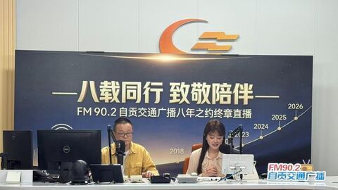 自贡融媒记者 王梓薇 张奕 陈柯迪 4月7日24时,陪伴盐都市民走过八载时光的FM90.2自贡交通广播正式停播。当晚,自贡市融媒体中心举办“八载同行 致敬陪伴”终章直播,与广大听众温情话别,为这段电波岁月画上圆满句点。FM90.2自贡交通广播自开播以来,始终坚守“交通服务、民生陪伴”的宣传定位,实时播报路况、及时传递资讯、精心开展暖心互动,成为广大市民通勤路上的“贴心伙伴”,用声音守护城市朝夕,留