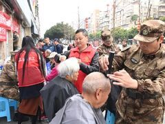荣县融媒体中心3月4日,在第63个学雷锋纪念日来临之际,荣县退役军人志愿服务队党支部联合荣县新城医院团委、青阳街道退役军人志愿分队、自贡众乐社工等多家单位,组织约60名志愿者在新城医院门口开展“学雷锋我们在行动”主题活动。志愿者们通过义诊、义剪、义务咨询、安全宣传等暖心服务,将雷锋精神转化为实际行动,赢得了现场群众的点赞。 活动现场,新城医院的义诊摊位前人头攒动。“老师,可以帮我查一下血糖吗?”68岁的张桂琼婆