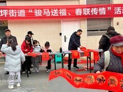 沿滩融媒1月22日上午,沿滩新城·卫坪街道在果丰农贸市场成功举办了“骏马送福、春联传情”迎春主题活动。活动现场布置温馨而热闹,红色宣纸、笔墨纸砚一应俱全,吸引了大量居民驻足参与。 活动特邀辖区三名书法爱好者来现场为大家写春联。他们围绕“马”年主题,写出了“骏马奔腾迎新春”“马到成功万事兴”等寓意吉祥的春联,并以不同书体写下“福”字,同时在书法爱好者的带动下,围观群众纷纷主动尝试,认真题写。“与印刷春联相比