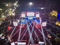 自贡网自贡融媒记者 幸维微 李婷 文/图 12月31日晚,自贡洋溢着浓厚的跨年喜庆氛围,多个地标亮起节日灯光,街头人流如织。作为当前火爆全川的体育文化盛事,“川超”热潮从赛场延续至跨年夜。一场融合体育激情、彩灯文化、地方美食与节庆氛围的跨年狂欢盛典——“灯绘华夏·川超燃情之夜”,在自贡檀木林体育馆盛大启幕,同时与市区商圈联动,形成全城欢动的迎新模式。在华商商圈,以“跨年快乐·Chill篇”为主题的活动吸