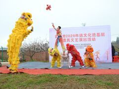 荣县融媒体中心3月4日,自贡市2026年送文化进基层惠民文艺演出活动在荣县旭阳镇大井村热闹举行,村民们从四面八方欢聚一堂,共赴这场融文化之美、民生之暖于一体的春日盛会。 活动现场人头攒动、气氛热烈。随着铿锵有力的锣鼓声,狮子舞率先登场。雄狮时而昂首阔步、威风凛凛,时而摇头摆尾、灵动俏皮,腾挪闪跃间矫健有神。表演途中,醒狮走下舞台与村民互动,掌声、欢呼声不断,瞬间点燃全场气氛。随后,顶坛《青花韵》雅致登场,瓷坛在