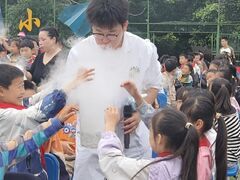 自贡网自贡融媒记者 刘晓丹 文/图 4月15日,自贡市贡井区青杠林小学校化身科学乐园。当天,作为“书香天府名家行”的重要组成部分,全网知名科普IP“米吴”团队携专场科学秀走进校园,为该校师生呈现了一场科普盛宴。活动现场,全网知名科普IP“米吴”教师团队以沉浸式科普剧场形式,将枯燥的科学原理转化为生动奇幻的实验表演。在干冰升华实验制造云雾缭绕奇幻场景、集体拉半球互动体验大气压强奥秘等环节,师生共同上台参