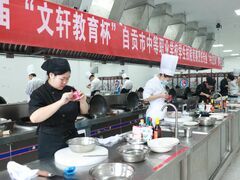 自贡网自贡融媒记者 王雨爽 11月11日,“文轩教育杯”自贡市中等职业学校第十八届学生技能竞赛“中式烹调赛项”在荣县职教中心火热开赛。本次竞赛由自贡市教育和体育局主办,自贡市人力资源和社会保障局、自贡市教育科学研究所和荣县职业技术教育中心承办,新华文轩出版传媒有限公司自贡分公司协办。 比赛共设面点、刀工、雕刻、热菜四个项目,来自全市5所中等职业学校的30名选手参赛。评委组以高度负责的态度,对参赛选手的