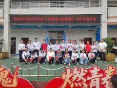 富顺县融媒体中心徐振宇 自贡融媒记者 兰艳 9月29日上午9时,在荣县旭东中学操场上,伴随着教师们激昂顿挫的《祖国颂》朗诵声,该校“月满中秋·情系国庆”主题系列活动开启。教师代表手持毛笔在百米长卷上即兴挥毫,“国泰民安”“花好月圆”等书法作品在笔墨流转间渐次呈现,全体学生驻足观赏,不时发出阵阵赞叹。 此次活动紧扣学校德育“126”育人体系与校园“静竞净敬”文化建设。前期筹备阶段的“我对祖国说”活动中,学生们将心里