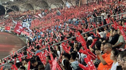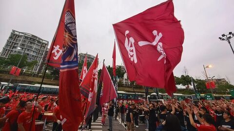 自贡网自贡融媒记者 王梓薇 幸维微 10月1日傍晚,自贡南湖体育中心热闹非凡。自贡灯城燊龙队与内江重龍酒队的德比战即将在此开赛,现场已提前涌动起足球热潮。 距离开赛还有几个小时,各地球迷已陆续来到球场周边。作为自贡足协认证的官方球迷组织,ZG39球迷会成员已整齐集结,统一的助威服饰构成醒目的风景线,气势如虹的助威声与围观群众的掌声交织成热浪。 球迷张先生一边跟练一边告诉记者:“要让球队听到最整齐的加油声
